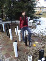 Harvest and I played a game of enormous chess on the enormous chess board.